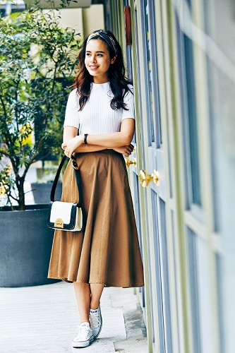 コンサバを基盤にカジュアル色を加え、大人の美しさを自然と醸し出す上品なファッションが特徴。