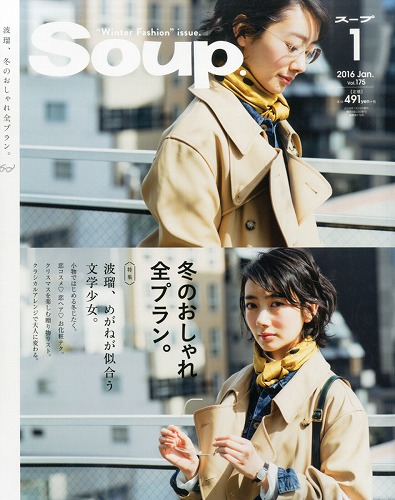 Soup.は誰もが抱えるファッションについての悩みに答えるファション、おしゃれな女の子には欠かせないヘア・メイクなどのビューティー情報を掲載している女性向けファッション誌。